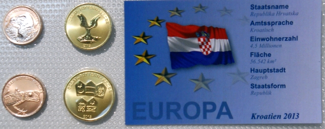 “Двери српске” објавиле су на свом сајту фотографије узорака серије кованог “хрватског евра”, који је посвећен уласку Хрватске у ЕУ 2013. године, када серија и треба да уђе у оптицај. Узорци су, како се наводи, ковани у 1 000 примјерака у Европској централној банци са сједиштем у Франкфурту на Мајни.