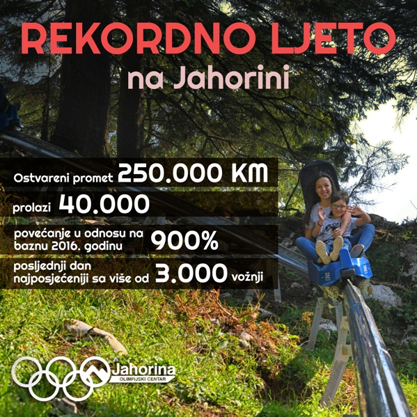 Ovo ljeto je prekretnica kada je Jahorina u pitanju, ostvareno je gotovo 40.000 ljetnih vožnji, i promet je dostigao impresivnu cifru od 250.000 KM što je povećanje u odnosu na baznu 2016. godinu za čak 900 odsto. Svi parametri su premašeni, ovo je prava revolucija. Jahorina je postala centar zbivanja, kako zbog nikada više infrastrukturnih projekata koji su trenutno u toku, tako i zbog nove, najveće ljetne atrakcije u regionu, boba na šinama.