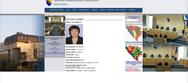 Naime, Dujmović je obavljala funkciju delegatkinje iz reda srpskog naroda u Domu naroda Parlamenta Federacije BiH u periodu 2010-2014. godine. Osnovni podaci o Zori Dujmović i danas su dostupni na web stranici Federalnog Parlamenta gdje između ostalog stoji da se Dujmović i tada nacionalno izjašnjavala kao Srpkinja.