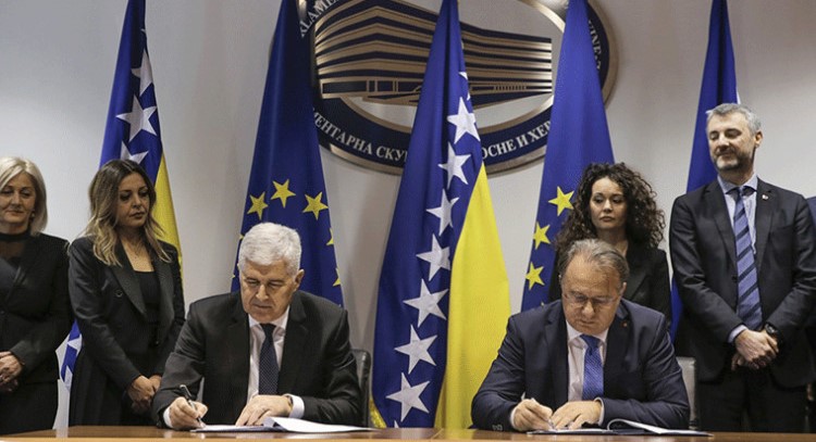 Sporazum je nakon nekoliko sedmica pregovora potpisan danas u zgradi Parlamentarne skupštine Bosne i Hercegovine. Potpisivanju sporazuma prisustvovali su predstavnici svih stranaka koje čine koaliciju a to su uz HDZ i partnere iz HNS-a SDP, Naša stranka, NiP, SBiH, NES, BHI Fuad Kasumović i Za nove generacije.