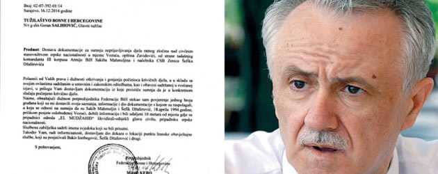 – Obavljajući dužnost potpredsjednika FBiH stekao sam povjerenje jednog broja građana koji su mi ostavili svoja saznanja, informacije i dio dokumentacije kojom su raspolagali, a koja se odnosi na sumnju da su Mahmuljin i Džaferović 18. aprila 1994. godine prilikom posjete Vozući dobili informaciju i bili udaljeni 10 metara od mjesta gdje su pripadnici odreda "El mudžahid" odsjekli glavu civilu, pripadniku srpske nacionalnosti – navodi se u Kebinoj prijavi dostavljenoj Salihoviću.