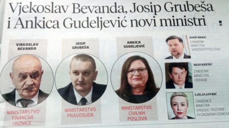 Aktuelni ministar finansija i trezora Bosne i Hercegovine Vjekoslav Bevanda, kao i trenutni ministar pravde BiH Josip Grubeša i u ovom mandatu zadržaće se na istim pozicijama u državnoj vladi. Prema informacijama Večernjeg lista, HDZ BiH će za ministra civilnih poslova BiH predložiti Ankicu Gudeljević, nekadašnjeg ambasadora BiH u Berlinu koju je opozvao Željko Komšić nakon preuzimanja dužnosti člana Predsjedništva BiH i "sječe" ambasadora koje je postavio bivši član Predsjedništva BiH Dragan Čović.