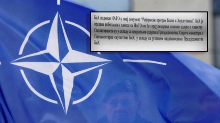 "BiH podnosi NATO-u ovaj dokument "Reformski program BiH". BiH je predana poboljšanju odnosa sa NATO-om bez prejudiciranja konačne odluke o članstvu. Sve aktivnosti su u skladu sa prijašnjim odlukama Predsjedništva, Savjeta ministara i Parlamentarne skupštine BiH, u skladu sa ustavnim nadležnostima Predsjendištva BiH", stoji u Programu reformi BiH.