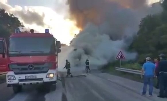 Cetinjski vatrogasci ugasili su požar koji je danas zahvatio autobus bosanskih registarskih oznaka, a saobraćaj se na tom dijelu puta odvija normalno.