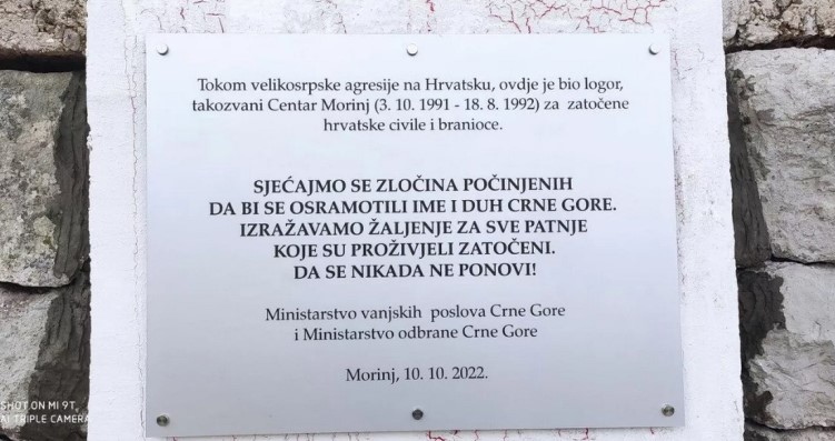 Spomen-ploču u logoru „Morinj” otkrili su 10. oktobra ministar spoljnih poslova Crne Gore Ranko Krivokapić i ministar odbrane Raško Konjević, u prisustvu hrvatskog šefa diplomatije Gordana Grlića Radmana i hrvatskog ministra branitelja Tome Medveda.