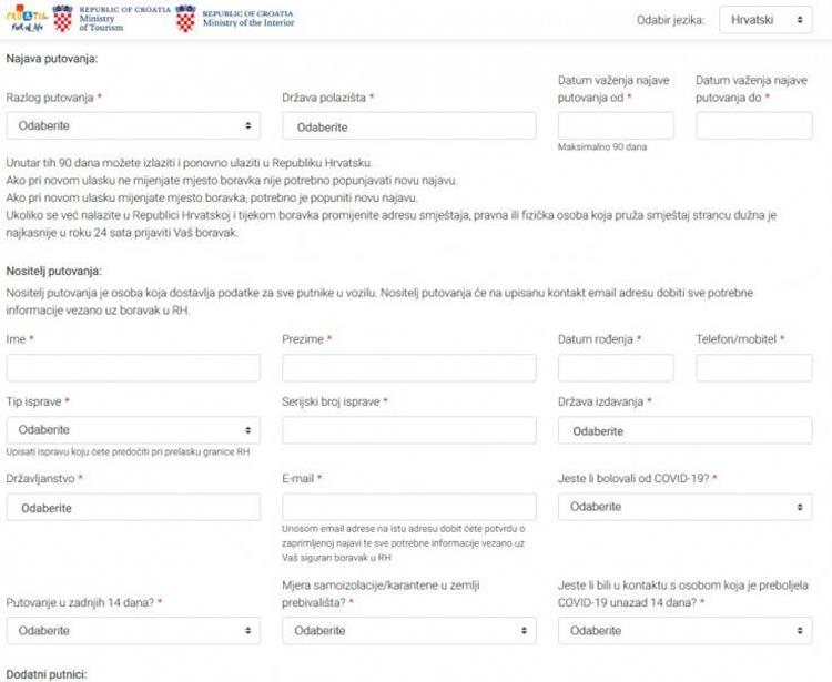 Особе које испуњавају наведене услове потребно је да се најаве онлајн посредством апликације entercroatia.mup.hr и оставе потребне податке да се не би стварале гужве на граничним прелазима приликом њиховог испуњавања.