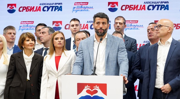 "Na 81,5 odsto obrađenog uzorka, lista ‘Aleksandar Vučić – Beograd sutra’ 53 procenta – 64 mandata, ‘Kreni promeni’ 16,8 posto – 20 mandata, ‘Biramo Beograd’ 12,12 posto – 14 mandata, Nestorović 8,3 posto i 10 mandata i Ruska stranka dva mandata", naveo je sinoć Šapić.