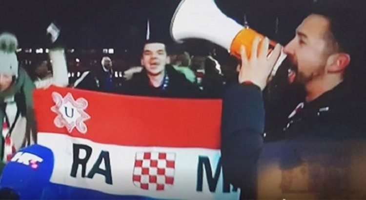 Dok je novinar govorio o utakmici i navijačima, u gro planu pojavila se zastava na kojoj se jasno vidi fašistički simbol, a na zastavi je pisalo Rama, pa se pretpostavlja da je riječ o navijačima iz tog mesta u BiH.
