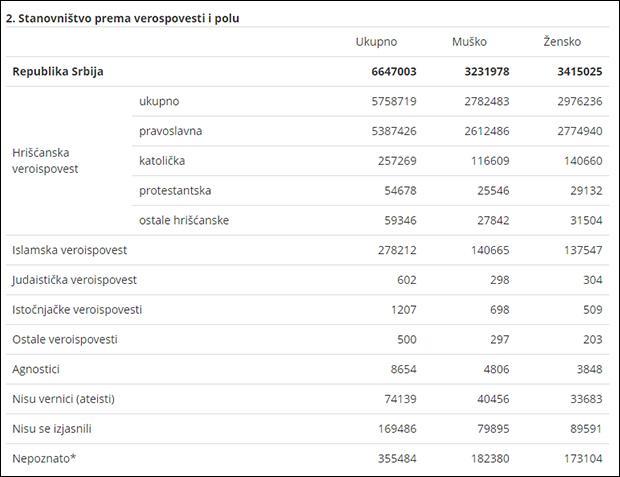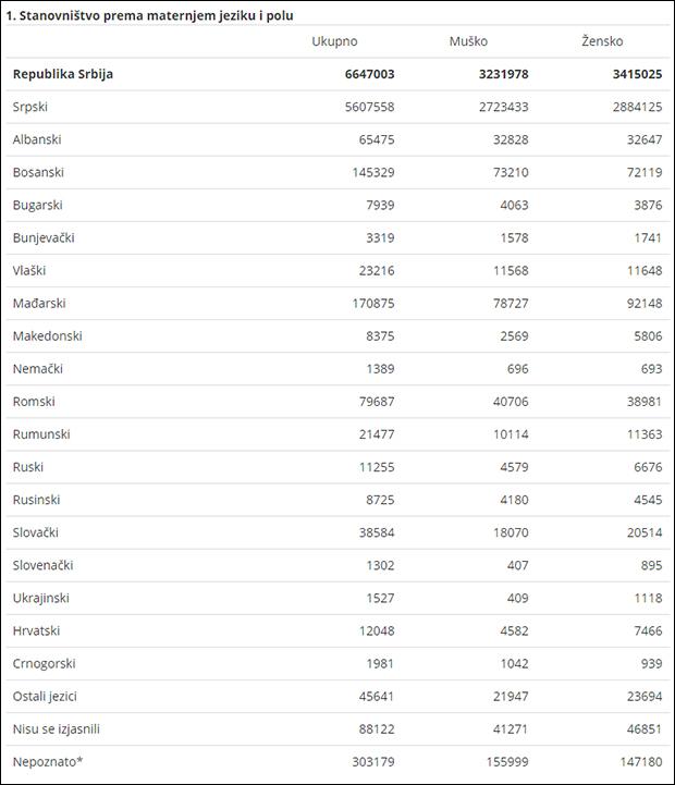 Republički zavod za statistiku objavio je konačne rezultate Popisa stanovništva, domaćinstava i stanova 2022. godine o stanovništvu Republike Srbije prema etnokulturalnim karakteristikama.