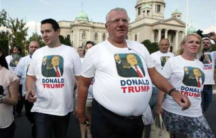 Većina okupljenih, uključujući i lidera radikala, nosila je majicu sa Trampovim likom i natpisom „Glasajte za Trampa — Srpska radikalna stranka“, na engleskom jeziku.
