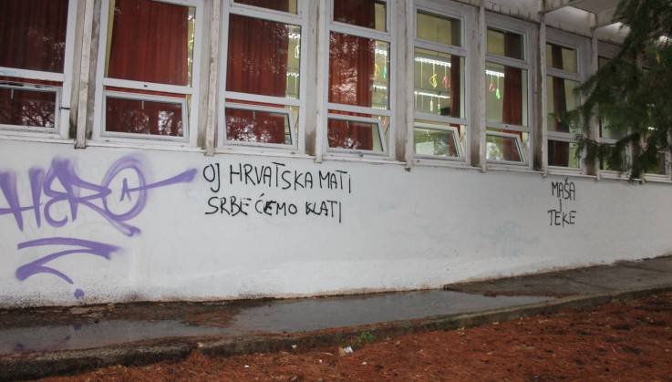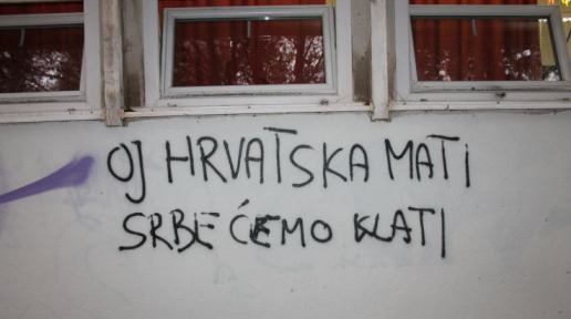 “Zbog grafita `Oj hrvatska mati, Srbe ćemo klati` policija je u ponedjeljak obavila uviđaj u dvorištu Osnovne škole `Petra Krešimira Četvrtog”, gdje je sporni grafit napisan crnim sprejom na zidu. Zbog sadržaja teksta policija će sprovesti sve radnje da nađe vandale te će obavijestiti i Opštinsko državno tužilaštvo u Šibeniku”, rekla je Marica Kosor, portparol Policijske uprave šibensko-kninske.
