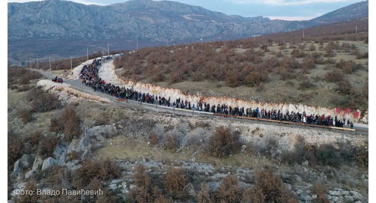 Oni su iz Orljeva juče u 15 časova i 30 minuta krenuli u molitvenom hodu ka hramu Hristovog vaskrsenja u Podgorici sa ikonama i crkvenim barjacima.