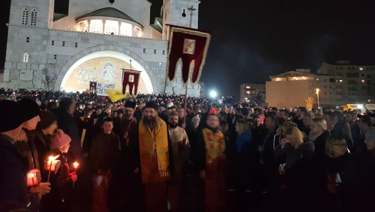 Otac Šćepanović je ispred crkve Svetog Đorđa poručio da je Podgorica dobila još jednu rijeku — „rijeku pravoslavnu“, jer su posljednji vjernici u litiji još na mostu „Milenijum“.