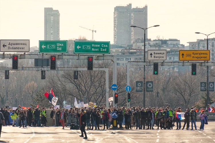 Studenti, srednjoškolci i građani koji su blokirali saobraćaj kod Studentskog grada, izašli su jutros oko 9.30 na auto-put, na kojem je policija prethodno zaustavila saobraćaj u smeru ka mostu "Gazela".