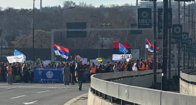 Iz pravca Voždovca na Autokomandu stigli su studenti Saobraćajnog fakulteta, Fakulteta političkih nauka i Fakulteta organizacionih nauka, javlja reporter RTS-a.