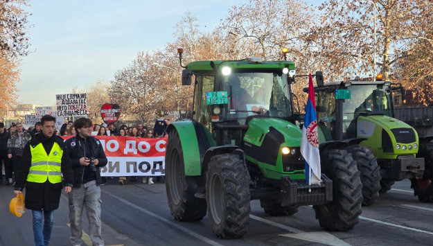 Kolona studenata Poljoprivrednog fakulteta, srednjoškolaca i građana, u pratnji deset traktora, stigla je oko devet časova iz Zemuna do Studentskog grada, gde su započeli blokadu saobraćajnica.