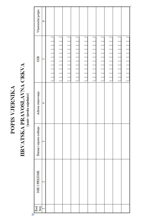 Zaključkom Ministarstva uprave od 21. rujna 2016. naloženo nam je za potrebe upisa Hrvatske pravoslavne crkve u Evidenciju vjerskih zajednica u skladu s člankom 21. Zakona o pravnom položaju vjerskih zajednica, da predamo popis vjernika na novom Obrazcu 2a:
