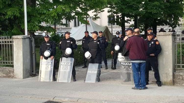 Policajci sa opremom za razbijanje protesta raspoređeni su ispred Centra bezbjednosti (CB) u Nikšiću, gdje se nalaze episkop budimljansko-nikšićki Joanikije i drugi sveštenici SPC kojima je određeno zadržavanje od 72 sata, prenosi crnogorski portal Analitika.