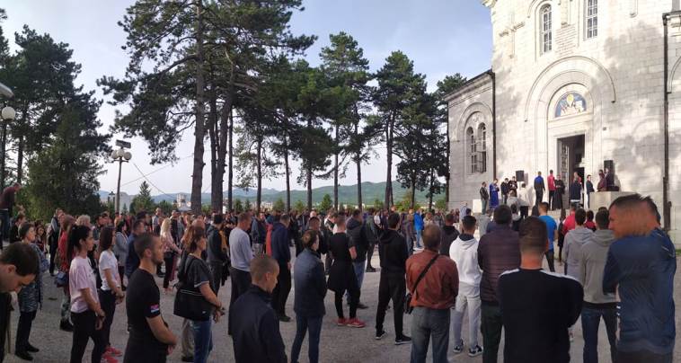 Nakon molebna veliki broj građana, skandirajući "Ne damo svetinje", "Ne damo sveštenike", "Puštite vladiku", "Puštite sveštenike", došao je preko puta zgrada nikšićkog Centra bezbjednosti.