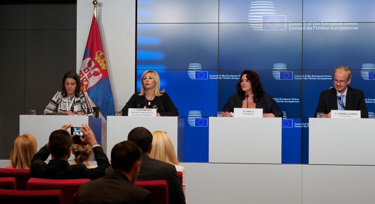Ministarka je, na konferenciji za novinare, rekla da je jasno da je Srbija, uz sve teškoće koje postoje u EU, koje vidimo i u regionu, gde pokazujemo da želimo da prevaziđemo teret prošlosti, kao i teško sprovođenje unutrašnjih refomi, posvećena svom starteškom cilju.