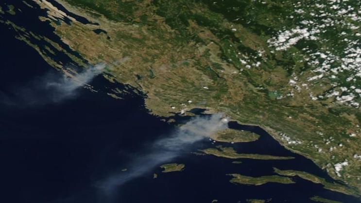 Površina zahvaćena vatrom toliko je velika da je i NASA-in satelit iz svemira snimio dim koji se nadvio nad Dalmacijom.