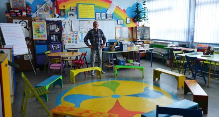 "Na časovima sjedimo u krugu i djeca govore iz položaja u kom se osjećaju najprijatnije, uglavnom sjedeći. Kod nas nema prvog ni posljednjeg i između nas nema prepreka", priča Dragan, čiji je predani rad s djecom nagrađen priznanjem za najboljeg edukatora Srbije 2014. godine.
