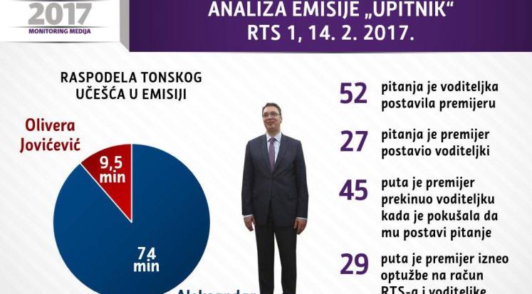 Dodaje se da je Vučić tokom emisije 29 puta izneo optužbe na račun RTS-a i voditeljke.