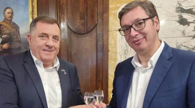 Vučić i Dodik su u zgradi Predsjedništva Srbije tom prilikom i nazdravili u čast sinoćne pobjede fudbalera Srbije nad Portugalijom i plasmana na Svjetsko prvenstvo u Kataru naredne godine.