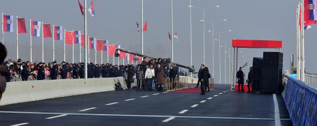Građani koji su se okupili da prisustvuju ovom istorijskom trenutku nose zastavice Kine i Srbije, a na samom ulazu na most su dva krana sa velikim zastavama dvije države.