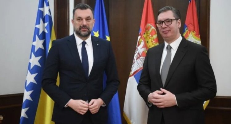– Predsjednik Srbije Aleksandar Vučić primio je danas ministra inostranih poslova Bosne i Hercegovine Elmedina Konakovića, sa kojim je razgovarao o jačanju sveukupne saradnje dvije zemalje, evropskom putu regiona i drugim aktuelnim pitanjima.