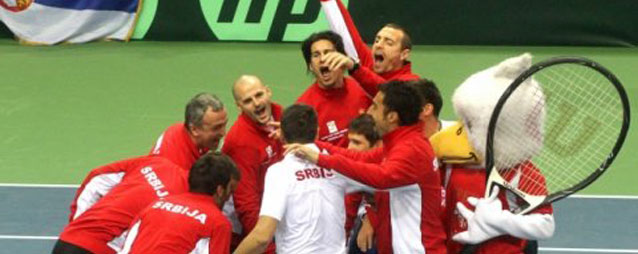 Тениска репрезентација Србије савладала је Шведску у оквиру првог кола Дејвис купа резултатом 4:1, пошто је одлучујући поен донио Јанко Типсаревић. Наш национални тим ће у четвртфиналу гостовати Чешкој, која је лако елимисала Италију такође са 4:1.