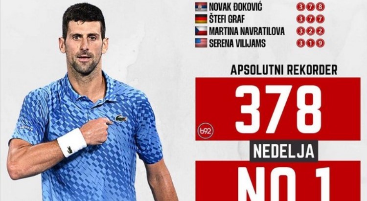 Novak je oborio još jedan u nizu rekorda i popunio još jednu stranicu istorije tenisa. Sve u svemu, malo je rekorda koje Novak nije oborio u tenisu, a drži one najvažnije – broj osvojenih grend slem turnira 22, broj osvojenih masters titula 38, broj osvojenih Završnih turnira 6, najviše godina završenih na prvom mjestu 7, najviše nedjelja provedenih na prvom mjestu ATP liste…