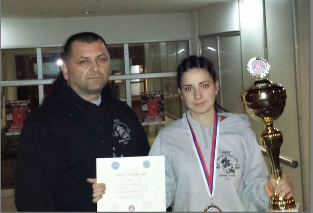 Lična karta Datum rođenja: 3. septembar 1994. Mjesto rođenja: Banja Luka Visina: 165 cm Težina: 50 kg Klub: KBK "Sveti Georgije Banja Luka" Dosadašnja karijera: Međunarodni otvoreni kup Sarajevo open 2013- jedno prvo i dva druga mjesta, Internacionalno otvoreno prvenstvo 2013 u Low kick-u (prvo mjesto), Internacionalno otvoreno kick box prvenstvo u kick light-u (prvo mjesto), Otvoreno prvenstvo RS 2013 u Low kick-u i u K1 (prvo mjesto), Otvoreno prvenstvo RS 2014 u K1 Prvo mjesto (odbranjena titula iz 2013. godine), Prvenstvo BiH u Full contact-u (prvo mjesto) i WAKO European cup Serbia open- Beograd u K1 (zlatna medalja i pehar) Planovi: Prvenstvo BiH u disciplinama Low kick i K1, Svjetsko prvenstvo u Mađarskoj i "Balkan open 2014" Bosna i Hercegovina |