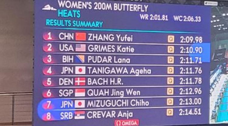 Finale trke 200 metara discipline delfin zakazano je za poslijepodne u 18:35 časova.
