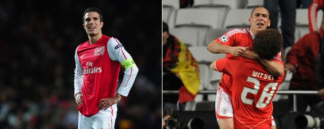 Фудбалери Арсенала побиједили су Милан резултатом 3:0, али “росо-нери” иде у четвртфинале Лиге шампиона, јер су у првом мечу побиједили са 4:0. Бенфика тријумфом од 2:0 у Лисабону, елиминисала Зенит из Санкт Петербурга.