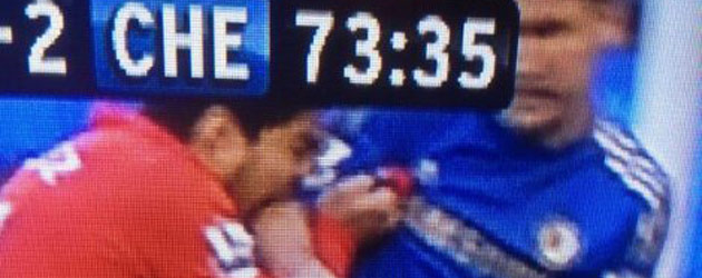 U 68. minutu je ugrizao Baneta Ivanovića za ruku i onda pao, ali sudija Kevin Frend nije nasjeo na njegov previjanje, mada nije ni primetio šta je Urugvajac prethodno uradio.