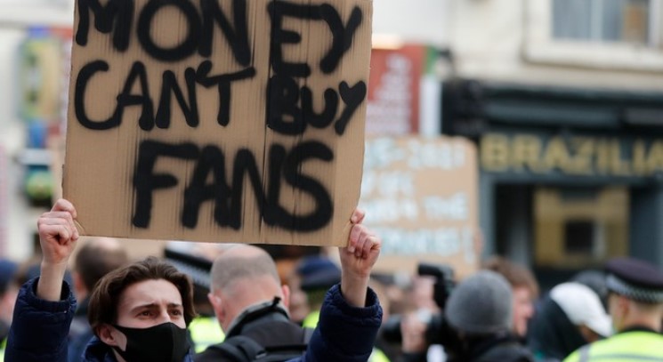 Ispred stadiona Stamford Bridž u Londonu prethodno su se okupili brojni navijači Čelsija u znak protesta zbog najavljenog učešća u Superligi.