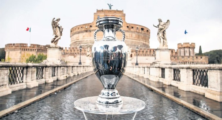 Насловна фотографија: Трофеј који се додјељује прваку Европе испред замка Сент Анђело у Риму пред почетак шампионата (Фото EPA-EFE/Fabio Frustaci)
