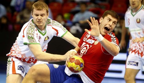 Stanić nije počeo u ritmu utakmice protiv Koreje – ipak, odbranio je šut kojim je omogućio napad za plus od tri gola, što je realizovao Stanković. Nikčević je prekinuo seriju golova, ali je Nenadić trećim dalekometnim golom to ispravio novim za četiri razlike. Istovremeno, i Rutenka je naišao na blok Stanića, i Srbija je u finiš poluvremena ušla sa 14:10. Golman Belorusa Čarapenka dva puta je zaustavio Nikčevića, ali je lijevo krilo Srbije došlo do petog gola, što je bio znak za tajm-aut i uzbunu u taboru rivala. Rutenka je isparirao lijevom krilu Srbije golom iz sedmerca, a zatim je na "plus pet" vratio Marsenić prvim pogotkom. Efikasno poluvrijeme okončao je kapiten Ilić četvrtim pogotkom, pa se na odmor otišlo sa zalihom od sedam golova prednosti: 20:13.