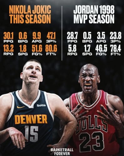 Portal Basketball Forever uporedio je Jokićevu aktuelnu sezonu s legendarnim Majklom Džordanom i njegovom MVP sezonom iz 1998. godine.