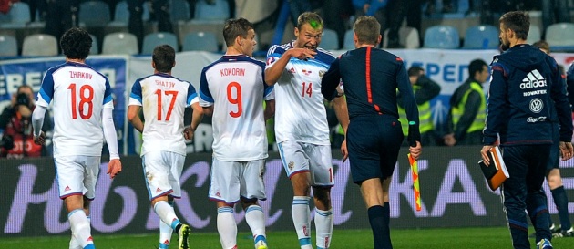 Susret G kvalifikacione grupe na stadionu u Podgorici prekinut je 27. marta već u prvom minutu pošto je ruski golman Igor Akinfejev pogođen sa tribina bakljom u glavu i morao je da bude prebačen u bolnicu, gdje su mu dijagnostifikovane opekotine na vratu i blaži potres mozga.