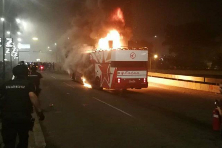 Fudbaleri su izašli iz autobusa koji je gorio između kružnog toka na Autokomandi i raskrsnice ka autoputu i Južnom bulevaru, a potvrđeno je da nema povrijeđenih.