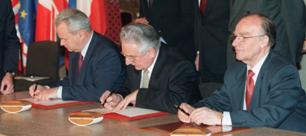 Mirovni sporazum za BiH, parafiran 21. novembra 1995. godine u Dejtonu, u američkoj državi Ohaju, poslije tronedjeljnih pregovora, potpisan je 14. decembra iste godine u Parizu.