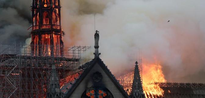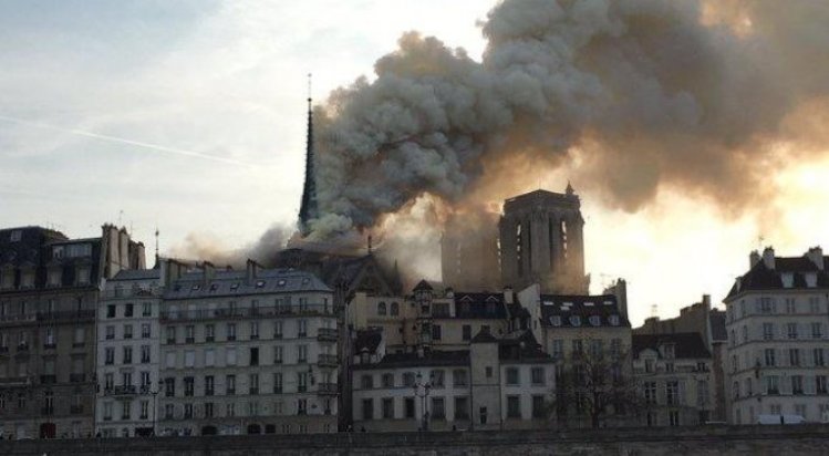 Ватра која је избила на врху катедрале из 12. вијека брзо се проширала на читав кров, прогутавши звоник чувене богомоље, који се потом у потпуности урушио. Тек тада је пожар стављен под контролу.