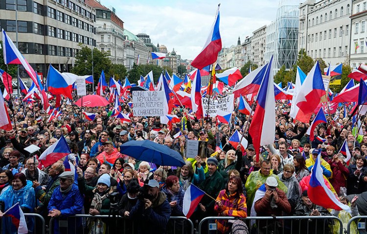 Демонстрације поводом државног празника на главном тргу у Прагу, које су организовале бројне десне странке и покрети, укључујући комунисте, уследиле су после сличног протеста у септембру који је такође окупио десетине хиљада људи.