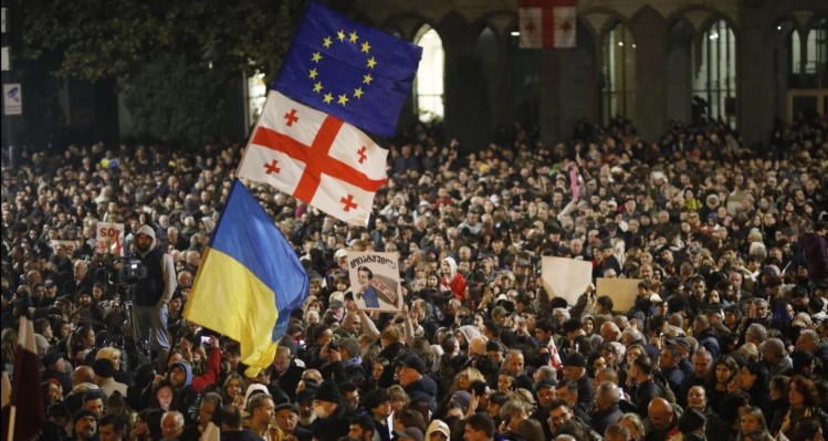 Zurabišvili, koja kao predsjednica ima uglavnom ceremonijalnu ulogu, rekla je okupljenima da će braniti put zemlje ka Evropi od akcija vladajuće partije Gruzijski san.