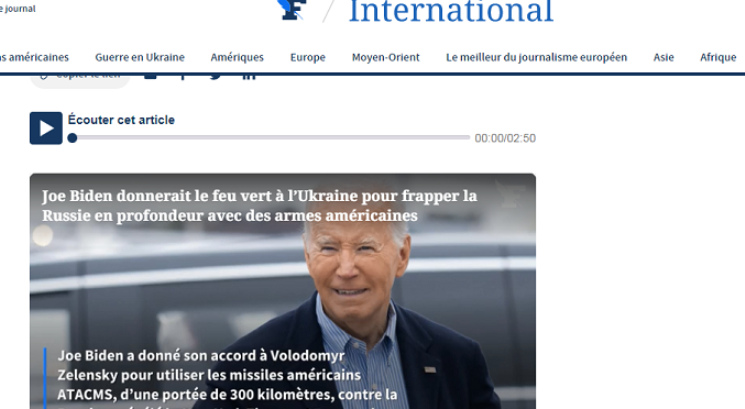 Francuski list Figaro, koji je juče pisao da su Pariz i London dozvolili Kijevu da gađa rusku teritoriju raketama dugog dometa, uklonio je informaciju o tome iz članka na svom sajtu, pišu RIA Novosti.