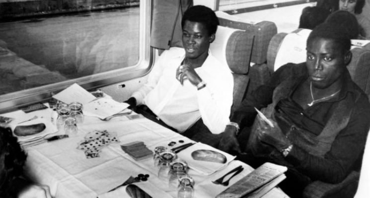 Žan-Pjer Adams (desno) sa kolegom iz francuske fudbalske reprezentacije Marijusom Trezorom 1974.
