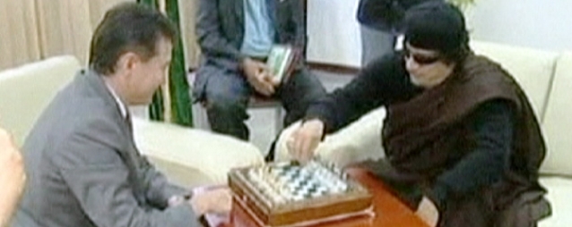 Руски милијардер Иљумжинов је током викенда у Триполију одиграо партију шаха са Гадафијем.
