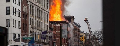 Pet sati nakon početka požara, više od 200 vatrogasaca još se uvijek borilo s požarom koji je zahvatio trgovine i stanove u četvrti East Village na Manhattanu.